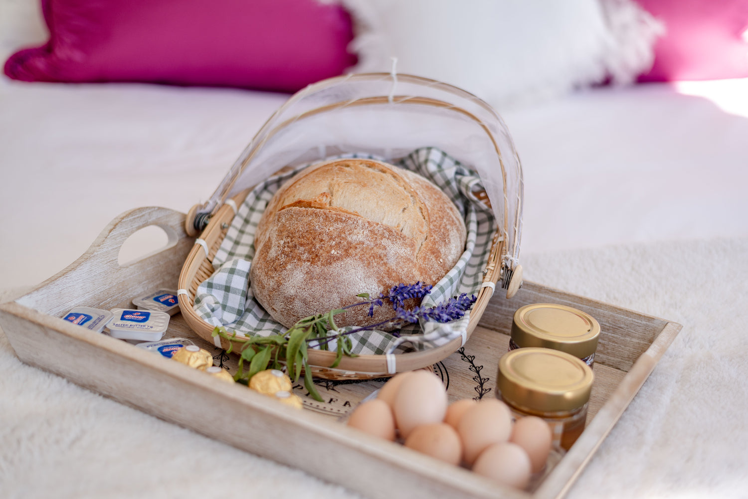 When you arrive, we’ll greet you with a freshly baked loaf of sourdough, just out of the oven. Along with that, you’ll find newly collected organic free-range eggs from our chickens, honey harvested from our hardworking bees, and exquisite farm-made strawberry jam.